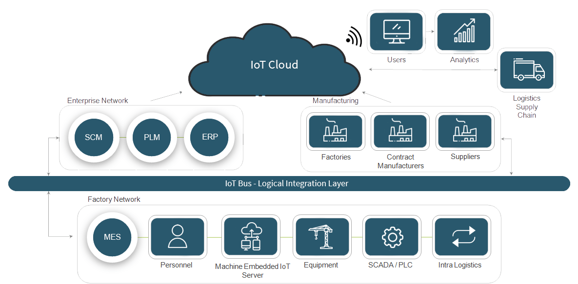 In the Smart Factory, PLM, ERP, MES and CMMS are integrated along their respective process life Cycles. Likewise, to gain the value of a Smart Factory, the MES System is also integrated with; Factory Equipment, Quality Systems, Automation Controls and other Digitally capable Factory Systems to achieve orders of magnitude in Production benefits.  These include; Higher Yield, Increased Production output, reduced human dependencies and Product cost.